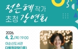 여수 코리아피플뉴스2026. 03.18[코리아피플뉴스]여수시는 오는 4월 2일 오후 7시 이순신도서관 다목적강당에서 정은혜 작가를 초청해 강연회를 개최한다고 밝혔다. 정은혜 작가는 '싸움의 기술: 모든 싸움은 사랑 이야기다', '변화를 위한 그림일기' 등을 집필한 미국 공인 미술치료사이자 생태예술가로 환경과 예술을 결합한 창작 활동을 국내외에서 활발하게 이어오고 있다. 이번 강연에서는 ‘너의 좋은 날을 살아봐’를 주제로 마음을 돌보는 창조적인 방법을 이야기하고, 단편 다큐멘터리 ‘플라스틱 만다라’와 올해 인도와 호주에서 전시 예정인 ‘산호뜨개’ 작품도 함께 소개할 …