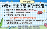 전남 코리아피플뉴스2026. 03.17[코리아피플뉴스]영광군은 어린이의 건강한 성장과 다양한 문화·예술 체험 기회를 제공하기 위해 오는 3월 30일부터 4월 1일까지 2026년 상반기 어린이 프로그램 수강생을 모집한다고 밝혔다. 이번 프로그램은 9세 이하 아동을 대상으로 신체활동과 예술, 정서발달을 돕는 다양한 체험형 교육으로 구성되어 ▲베이베붐 ▲트니트니 ▲튼튼쑥쑥 키즈요가 ▲키즈발레 ▲감성동화구연 ▲키즈드럼 ▲사물악기 체험놀이 ▲우리노래 우리놀이 ▲발표력동화구연 등 총 9개 분야 18개 강좌로 운영될 예정이다. 특히 신체활동 중심 프로그램부터 음악·놀이·동…