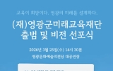 영광 코리아피플뉴스2026. 03.11[코리아피플뉴스]영광군미래교육재단은 오는 3월 25일 오후 2시 30분, 영광문화예술의전당 대공연장에서 '영광군미래교육재단 출범 및 비전선포식'을 개최한다. 이번 행사는 영광군미래교육재단의 공식 출범을 대ㆍ내외에 알리고 지역 교육 생태계 조성의 출발을 알리기 위하여 마련됐다. 재단 출범 경과보고, 재단 비전 선포, 퍼포먼스 등이 진행될 예정이며, 재단의 설립 취지와 운영 방향을 군민과 함께 공유하는 뜻깊은 자리가 될 것으로 기대된다. 영광군미래교육재단은 지역 교육의 지속가능한 발전과 교육 경쟁력 강화를 위해 대학생 등록금 지원…