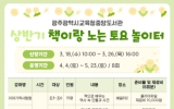 광주 코리아피플뉴스2026. 03.11[코리아피플뉴스]광주광역시교육청중앙도서관은 오는 4월 4일부터 5월 23일까지 초등학생을 대상으로 ‘2026년도 상반기 책이랑 노는 토요 놀이터’ 프로그램을 운영한다. 이번 프로그램은 초등학생들이 인문 독서를 기반으로 다채로운 체험을 하며, 사고력을 확장하고 적성을 탐색하도록 지원하기 위해 마련됐다. 특히 학생들이 휴일에도 건전한 여가 활동과 자기계발을 이어갈 수 있도록 토요일 과정으로 기획됐다. 프로그램은 매주 토요일 오전(10~12시)·오후(14~16시) 과정으로 나눠 강좌별 10~15명씩 모둠을 구성해 진행된다. 오전 …