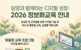 구청 코리아피플뉴스2026. 03.06[코리아피플뉴스] 담양군은 지역 농업인의 디지털 소통 능력을 키우고 스마트한 농촌 환경을 조성하기 위해 ‘2026년 농업인 정보화 교육’을 추진한다. 이번 교육은 3월 3일부터 6월 19일까지 총 7개 과정(68시간)으로 운영한다. 교육은 매주 농업기술센터 정보화 교육장에서 오후 2시부터 4시까지 진행하며, 과정별로 교육생 20명이 참여한다. 군은 급변하는 디지털 환경에 맞춰 기존 컴퓨터 기초 교육에 더해, 최신 인공지능 기술을 농업 현장과 일상에 접목할 수 있도록 내용을 구성했다. 주요 교육 내용은 ▲스마트폰 …