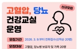 영광 코리아피플뉴스2026. 03.06[코리아피플뉴스]영광군보건소는 만성질환 예방과 군민 건강수명 연장을 위해'2026년 상반기 고혈압·당뇨병 건강교실'참여자 20명을 선착순 모집한다고 밝혔다. 고혈압과 당뇨병은 자각증상이 적어 관리가 소홀해지기 쉬운 대표적인 만성질환으로, 방치할 경우 심뇌혈관질환 등 중증 합병증으로 이어질 수 있어 꾸준한 관리가 무엇보다 중요하다. 이번 건강교실은 3월 24일부터 주 2회(화, 목) 총 8회 과정으로 운영되며, ▲혈압·혈당 기초검사 ▲저염·저당 식생활 실습 ▲맞춤형 운동요법 ▲복약관리 지도 ▲스트레스 관리 프로그램 ▲소근육 …