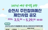 순천 코리아피플뉴스2026. 03.05[코리아피플뉴스]순천시는 2027년도 예산편성 과정에 시민의 다양한 의견과 아이디어를 반영하기 위해 3월부터 5월까지 주민참여예산 제안사업을 접수한다고 밝혔다. 주민참여예산제는 시민이 직접 지역에 필요한 사업을 제안하고, 이를 예산에 반영함으로써 재정 운영의 투명성과 민주성을 높이는 제도이다. 시민의 시각에서 생활 속 불편사항을 발굴하고, 지역 현안 해결을 위한 정책을 제안할 수 있다는 점에서 실질적인 참여 행정의 대표제도로 자리매김하고 있다. 순천시는 2021년부터 24개 읍면동 주민자치회를 전면 시행해 왔으며, 주민참여예…