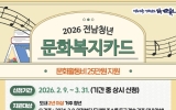 순천 코리아피플뉴스2026. 02.11[코리아피플뉴스]순천시는 청년들의 문화생활 향유 및 자기계발 활동을 지원하기 위해 2026년 전남청년 문화복지카드 지원사업 대상자를 오는 3월 31일까지 모집한다. 청년 문화복지카드는 공연관람, 학원수강, 도서구입 등 문화복지비를 1인당 연 25만 원 지원해 주는 사업이다. 지원 대상은 현재 주민등록상 주소지가 순천시이면서 2024년 2월 9일 이전부터 전남 도내에 주소를 두고 2년 이상 계속 거주하는 19~28세(1998~2007년생) 청년이다. 지난해 지원금을 받은 대상자도 올해 다시 신청해야 한다. 다만, 복지포인트를…