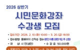 광주 코리아피플뉴스2026. 02.10[코리아피플뉴스]광주광역시교육청중앙도서관은 오는 3월 3일부터 6월 24일까지 도서관 배움터실 등에서 ‘2026년도 상반기 시민문화강좌’를 운영한다. 이번 강좌는 시민들에게 자기계발의 기회를 제공해 일상 속 배움의 즐거움을 누릴 수 있도록 지원하기 위해 마련됐다. 강좌는 본관과 분관(최상준도서관)에서 나눠 진행된다. 광주중앙도서관 본관은 ▲AI를 활용한 자서전 쓰기 ▲영어회화 ▲일어독해 ▲중국어 회화 등 4개 과정을 운영한다. 분관 최상준도서관은 ▲패브릭 아트 ▲연필 스케치 ▲서예 ▲영어회화 등 4개 과정을 선보인다.…