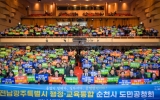 강진 코리아피플뉴스2026. 02.03[코리아피플뉴스]순천시는 전라남도와 함께 3일 순천문화예술회관에서 전남광주특별시 행정·교육 통합 도민 공청회를 개최하고, 통합 추진의 방향과 핵심 과제를 시민과 함께 논의했다. 이날 행사에는 노관규 순천시장을 비롯해, 김영록 전라남도지사, 김대중 전라남도교육감, 강형구 순천시의회 의장, 허동균 순천교육지원청 교육장, 지역 사회단체 관계자와 시민 등 1,000여 명이 참석해 전남·광주 통합에 대한 높은 관심을 보였다. 공청회는 노관규 순천시장의 환영사를 시작으로, 김영록 도지사의 전남·광주 행정통합 추진 방안 설명, 김대중 교육감…