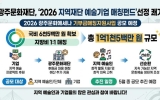 구례 코리아피플뉴스2026. 04.09[코리아피플뉴스]광주문화재단은 한국문화예술위원회가 주관하는 ‘2026년 지역재단 예술기업 매칭펀드 지원사업’ 공모에 최종 선정돼 국비 6천5백만 원을 확보했다고 밝혔다. 재단은 이를 지방비와 1:1로 매칭하여 총 1억1천5백만 원 규모의 지원 사업을 추진할 계획이다. 해당 사업은 한국문화예술위원회가 올해 신설한 사업으로, 지역문화재단의 매칭 그랜트 사업에 문예진흥기금을 연계 지원하여 지역 예술계와 기업 간의 협력 기반을 강화하는 데 목적이 있다. 이번 선정은 재단이 메세나 사업의 기반을 강화하고, 매칭에 필요한 재정적 …