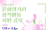광주 코리아피플뉴스2026. 01.15[코리아피플뉴스]순천시는 문화의 거리를 예술특화 거점지역으로 육성하고 지역 예술인의 지속가능한 창작활동을 지원하기 위해 ‘2026년 순천시 문화의 거리 창작활동 지원사업’ 참여자를 공개 모집한다고 밝혔다. 공모 대상은 문화의 거리 구역인 영동․행동 전역과 금곡동 일부 지역에서 문화예술 업종을 운영하거나 거주 중인 주민이다. 지원 분야는 체험, 전시, 공연 등 문화예술 관련 프로그램으로, 지원규모는 체험 최대 200만 원, 전시 400만 원, 공연 500만 원 이내이다. 신청 기간은 1월 15일부터 2월 4일까지이며, 신청 방…