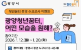 광양 코리아피플뉴스2026. 01.14[코리아피플뉴스]광양청년꿈터가 1월 12일부터 20일까지 ‘광양청년꿈터, 어떤 모습을 원해?’를 주제로 2026년 청년꿈터 운영을 위한 프로그램 수요조사 이벤트를 진행한다. 이번 이벤트는 청년들이 직접 제안하는 광양청년꿈터의 운영 방향과 프로그램 수요를 파악해, 이를 2026년 청년꿈터 프로그램 운영에 반영하고 청년 커뮤니티 공간으로서의 역할을 확대하기 위해 마련됐다. 참여 대상은 광양시에 거주하거나 광양시에서 활동 중인 18세부터 45세 이하의 청년이다. 참여 방법은 광양청년꿈터 공식 인스타그램을 팔로우한 뒤, ‘청년이 바라…