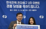 광주 코리아피플뉴스2025. 12.23[코리아피플뉴스]한국전력이 전기요금 전자청구서 이용 확대를 통해 고객 편의성을 높이는 동시에 탄소 감축이라는 사회적 가치 실현에 속도를 내고 있다. 한전은 지난 12월 19일에 서울 중구 서울본부에서 전자청구서 신청 이벤트 당첨자에게 경품 전달식을 진행하고 전자청구서 이용 고객이 1,500만 호를 넘어섰다고 발표했다. 이는 전체 전기사용 고객 2,500만 호 가운데 60% 이상이 종이 청구서 대신 모바일·전자 방식의 청구 서비스를 이용하고 있는 것이다. 이 같은 성과는 지난해부터 추진해 온 전자청구서 신청 이벤트와 고객 서비…