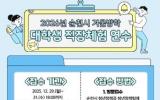 순천 코리아피플뉴스2025. 12.23[코리아피플뉴스]순천시는 겨울방학을 맞아 대학생들에게 행정 현장 경험의 기회를 제공하기 위해 ‘2026년 겨울방학 대학생 직장체험 연수생’을 모집한다고 밝혔다. 접수 기간은 12월 29일부터 31일까지이며, 선발 인원은 총 25명이다. 신청 대상은 공고일(12월 22일) 기준 순천시에 주민등록을 두고 있는 대학교 재학생 또는 휴학생이면 지원할 수 있다. 다만, 현재 취업 중이거나 과거 행정인턴직장체험 참여 이력이 있는 경우에는 신청이 제한된다. 선발된 연수생은 2026년 1월 19일부터 2월 13일까지 4주간 순천시청 …