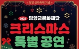 [코리아피플뉴스] 담양군문화재단은 연말연시를 맞아 ‘제7회 담양산타축제’와 연계한 ‘2025 크리스마스 특별 공연’을 12월 24일부터 25일까지 이틀간 담양읍 중앙공원 일원에서 개최한다. 이번 공연은 군민과 관광객에게 문화 향유 기회를 제공하고, 거리 공연을 통해 원도심 유동 인구를 늘려 지역 상권 활성화로 이어가기 위해 마련됐다. 공연은 매일 오후 2시부터 5시까지 진행된다. 행사 첫날인 24일에는 정용주, 공성길, 주현 등 포크 가수들이 무대에 오르며, 전남도립대 버스킹팀과 여신콜라보예술단이 함께 참여해 크리…