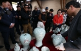 강진 코리아피플뉴스2026. 02.23[코리아피플뉴스]1300˚C를 견딘 청자의 빛은 영롱하기만 하다. ‘흙과 불 그리고 사람의 이야기’를 주제로 열리고 있는 제54회 강진청자축제. 지난 22일 강진군 대구면 고려청자박물관 제2호가마에서 화목가마 요출행사가 열린 가운데 옛 전통방식 그대로 소나무 장작을 이용해 48시간 동안 구워낸 청자를 꺼내고 있다.