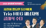 강진 코리아피플뉴스2025. 11.26[코리아피플뉴스]화순군은 '2025 군민행복 아카데미의 마지막 10회차 강연을 오는 12월 10일 오후 3시에 화순군청 4층 대회의실에서 개최한다고 밝혔다. 이번 강연은 클래식 연주단체 Trio MEG를 초청해 ‘사랑이 필요한 당신에게 – Trio MEG 세 남자의 클래식 수다’를 주제로 진행된다. 피아노(김용진)·바이올린(오현)·첼로(윤여훈)의 실내악 연주와 해설을 곁들인 클래식 토크 콘서트 형식으로, 누구나 공감할 수 있는 ‘사랑’을 테마로 재해석한 명곡을 군민들에게 들려줄 예정이다. Trio MEG는 2017년 창단한 …