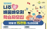 전남 코리아피플뉴스2026. 02.24[코리아피플뉴스]전라남도 나주시가 시민의 평생학습권 보장과 자기계발 지원을 위해 5천 명 규모의 ‘2026년 나주애(愛)배움바우처’를 본격 운영하며 체감형 평생교육 혁신정책을 이어간다. 나주시는 19세 이상 시민을 대상으로 연간 15만 원을 바우처 전용 카드로 지원하는 ‘나주애배움바우처’ 학습자 신청을 3월 4일부터 20일까지 접수한다고 23일 밝혔다. 나주애배움바우처는 민선 8기 출범과 함께 2023년 전라남도 최초로 도입된 이후 시민들의 높은 참여 속에 지속 확대돼 온 맞춤형 평생학습 정책이다. 사업 첫해 2500명 지원을…
