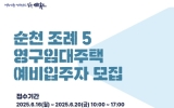광주 코리아피플뉴스2025. 05.29[코리아피플뉴스]순천시는 주거 취약계층의 주거복지 수요 증가에 대응하기 위해 ‘순천조례5차 영구임대주택’ 예비입주자 180세대를 모집한다. 이번 영구임대주택모집은 조례주공5차 내 501~504동을 대상으로 하며, 공급형별 26.37㎡ 150세대, 31.32㎡ 30세대로 예비입주자 180세대를 모집한다. 모집일정은 6월 16일부터 6월 20일까지 5일간 주민등록상 주소지 관할 읍·면·동 행정복지센터에서 방문 접수 받는다. 신청자격은 공고일 기준 성년자(만 19세 이상)로, 무주택세대구성원이어야 하며, 입주자 모집 공고문에 …