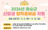 교육 코리아피플뉴스2026. 03.16[코리아피플뉴스 / 김영현 기자] 27일 화순군은 2026학년도 초‧중‧고등학교 신입생 가정의 교육비 부담을 완화하고 보편적 교육복지를 실현하기 위해 입학준비금 1인당 20만 원을 화순사랑상품권으로 지원한다고 밝혔다. 지원 대상은 사업 기간 내 신청일 기준 화순군에 주민등록을 둔 초‧중‧고등학교 1학년 입학생으로, 타 시‧군에서 전입한 1학년 학생도 포함되고, 다른 법령 또는 조례에 따라 입학 관련 비용을 지원받은 경우에는 중복 지원이 제한된다. 사업 기간은 2026년 3월부터 11월까지이며, 특히 3월 3일부터 3월 1…