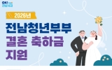 광양 코리아피플뉴스2026. 01.13[코리아피플뉴스]전라남도는 청년부부의 결혼 초기 경제적 부담 완화와 전남 지역 정착 유도를 위해 ‘청년부부 결혼축하금’ 200만 원을 지원한다. 청년부부 결혼축하금 지원사업은 전남도가 2021년 전국 광역시·도 최초로 시행했다. 지원 대상은 혼인신고일 현재 49세 이하 부부다. 신청일 직전까지 전남에 6개월 이상 주소를 둬야 한다. 혼인신고 후 6개월이 지난 날부터 1년 6개월 이내 신청 가능하며, 신청한 달의 다음 달 15일에 받을 수 있다. 결혼축하금은 주소지 관할 읍면동 행정복지센터를 방문해 신청하거나 전남 아이톡…