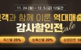 화순 코리아피플뉴스2025. 12.12[코리아피플뉴스]화순군은 올해 화순팜 온라인 쇼핑몰 창설 이래 역대 최고 매출 달성에 보답하고자, 이달 24일부터 다음 달 5일까지 12일간'고객과 함께 이룬 역대 매출! 감사 할인전' 이벤트를 추진한다고 밝혔다. 이번 행사는 김장철, 연말 모임 행사 등 겨울나기를 겨냥한 특별 기획전으로 준비했다. 전 품목 20% 할인 쿠폰을 회원당 5매씩 지급하며, 축산물 ‘내 사랑 고기’ 코너를 통해 5% 추가 할인하는 등 일부 품목은 평상시보다 최소 25% 이상 저렴하게 구매할 수 있다. 또, 국거리 재료, 탕 제품 등을 모아 ‘뜨…