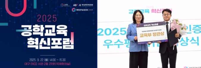 26일 전남대에 따르면, 공과대학 장민철 교학부학장(고분자융합소재공학부 교수‧공학교육연구센터장)이 지난 9월 22일 대구 EXCO에서 열린 ‘2025 공학교육 혁신포럼’에서 교육부장관상을 수상했다.
