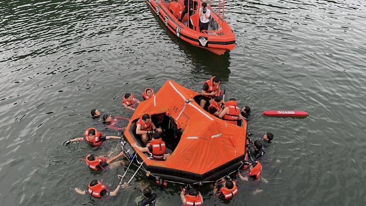 주요 교육내용으로는 ▲ 최신 선박 사고사례 소개 ▲ 팽창식 구명뗏목 이론(각부명칭 및 용도) ▲ 구명뗏목 운용법(자동·수동·복원법) 및 점검요령 ▲ 개인 생존훈련 등 실습 위주 교육을 실시하여 현장 근무자들의 눈높이에 맞춰 실질적이고 체계적인 교육을 제공했다.