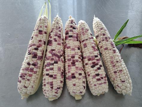 ‘얼룩찰1호’는 흰색과 보라색이 혼합된 얼룩무늬 알갱이를 가진 찰옥수수로 독특한 외관과 시각적 기호성으로 소비자들의 주목을 받고 있다.