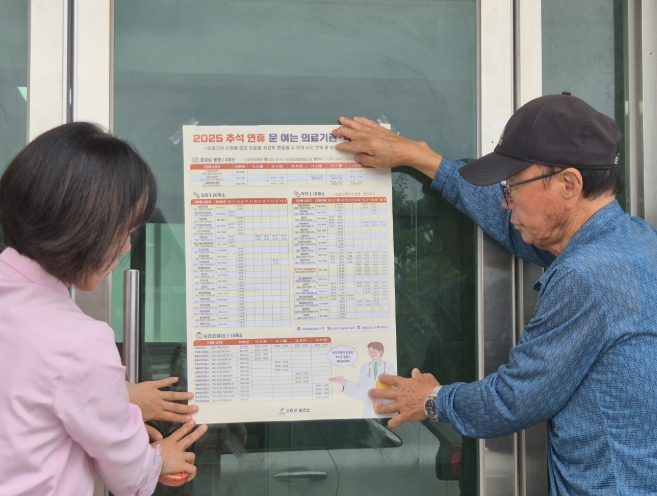 연휴 기간 응급환자 발생 시 신속한 대응을 위해 응급의료기관 및 문 여는 보건기관, 병의원, 약국의 운영 현황을 점검하고, 군민들이 필요한 정보를 쉽게 확인할 수 있도록 마을회관에 포스터를 부착하고 군 대표 누리집(홈페이지)과 사회관계망서비스(SNS)를 통해 안내하는 등 홍보를 이어 갈 계획이다.