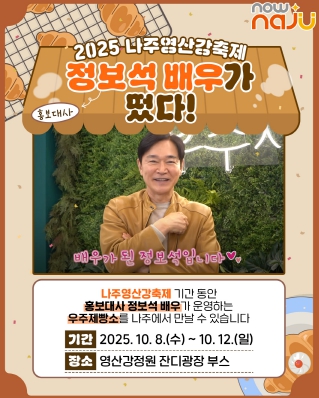 나주시는 성공적인 축제 개최를 위해 반남면 출신 배우 정보석 씨를 ‘2025 나주영산강축제’ 홍보대사로 위촉했다고 2일 밝혔다.