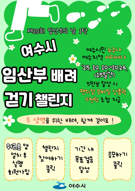 여수시 관계자는 “이번 행사를 통해 임신과 출산의 소중함을 다시 한번 되새기고 임산부를 배려하는 문화가 더욱 확산되기를 기대한다”며 “앞으로도 임산부가 안심하고 출산할 수 있는 환경 조성을 위한 노력을 아끼지 않겠다”고 말했다.