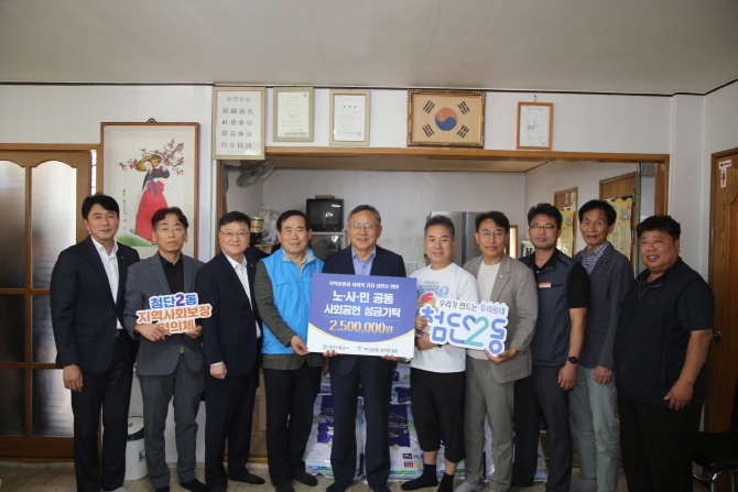 [코리아피플뉴스] 광주교통공사 조익문 사장과 김형일 노동조합위원장, 하나은행 호남 영업 그룹 우승구 부행장은 최근 지역 상생과 사회적 가치 실현을 위한 ‘가을 맞이 노사민 사랑 나눔 행사’를 갖고, 광주시 서구 가족센터와 첨단2동 봉산 경로당에 총 500만 원의 후원금을 전달했다.