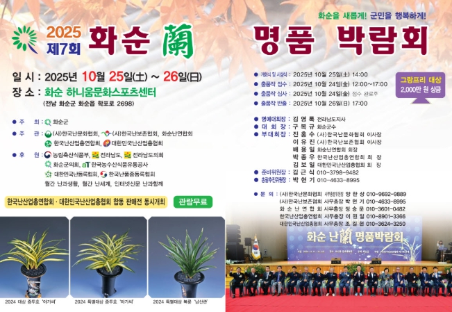 이번 박람회에는 화순난연합회, (사)한국난문화협회, (사)한국난보존협회 등 주요 기관이 참여하며, 1,000여 점이 넘는 출품으로 수준 높은 춘란과 다양한 품종의 난이 전시될 예정이다.
