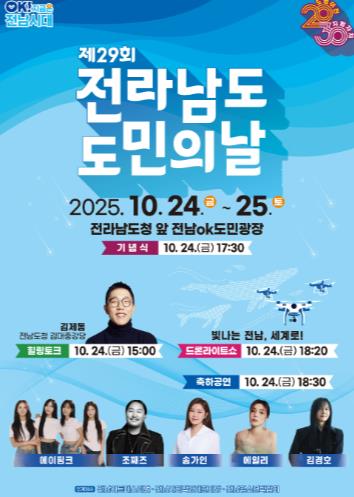 고미경 전남도 자치행정국장은 “올해 도민의 날은 지방자치 30년과 도청 신청사 개청 20년을 맞아 전남의 변화와 도약을 함께 돌아보는 뜻깊은 자리”라며 “많은 도민께서 가족과 함께 방문해 즐기고 전남의 새로운 시작을 함께하길 바란다”고 당부했다.