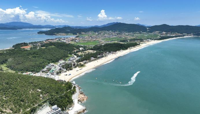 ‘대한민국 맨발 걷기 치유길 1호’는 3.8km의 모래 해변과 더불어 1km의 황톳길, 해송 숲이 조화를 이루고 있어 맨발 걷기에 최적이다.