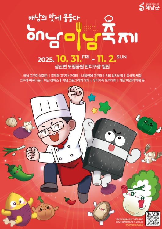 올해는‘해남의 맛에 물들다’를 주제로 10월 31일부터 11월 2일까지 사흘간 축제가 진행된다.