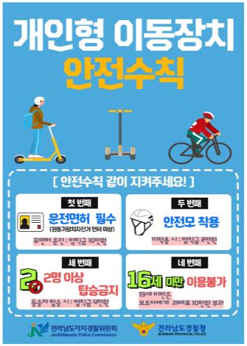 또한 도민을 대상으로 ‘개인형 이동장치 운전 전 반드시 면허 확인’ 캠페인을 함께 펼쳐 교통안전의식 제고와 청소년 보호에 나설 방침이다.