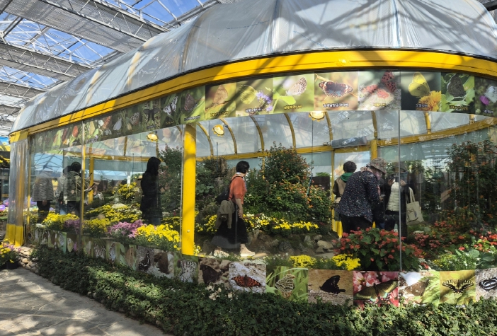 ‘나비의 가을정원’은 나비곤충생태관 내 ‘명품 국화분재 전시관’ 속 특별 전시 공간으로, 국화 향기 속에서 생동감 넘치는 나비의 날갯짓을 감상할 수 있도록 구성됐다.