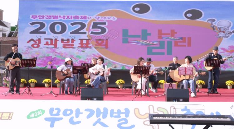 행사는 풍물패 길놀이 공연을 시작으로 무안군이 전국 최초로 추진한 마마학당 어머니들의 노래와 댄스 공연을 비롯해 읍·면별 13개 동아리팀의 댄스·장구· 노래·요가 등 다채로운 무대가 이어져 함께한 주민과 관광객의 환호와 박수를 받았다.
