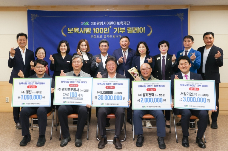 이광용 이사장은 “이번 기부 릴레이를 통해 ‘광양시에서 태어난 아이는 광양시민이 함께 키운다’는 광양시만의 보육 철학을 잘 보여줬다고 생각한다”며 “이번 릴레이는 단순한 모금이 아니라, 광양의 모든 아이가 행복하게 성장할 수 있는 환경을 만드는 희망의 시작점이 됐다. 여러분의 따뜻한 나눔을 밑거름 삼아 재단은 앞으로도 아이와 부모가 함께 행복한 광양, 보육이 자랑이 되는 광양을 만들기 위해 최선을 다하겠다. 다시 한번 깊이 감사드린다”고 말했다.