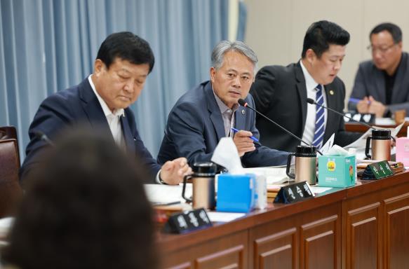 지역특화과수지원센터(과수연구소) 건립 지연 문제와 관련해서는 “인허가 지연과 실시설계 장기화로 공정이 늦어졌다”며 “사고·명시 이월 및 분할 집행 과정을 철저히 관리할 것과, 내년 12월 말 준공 목표를 반드시 지키기 위해 공정 관리와 리스크 대응을 강화하라”고 촉구했다.
