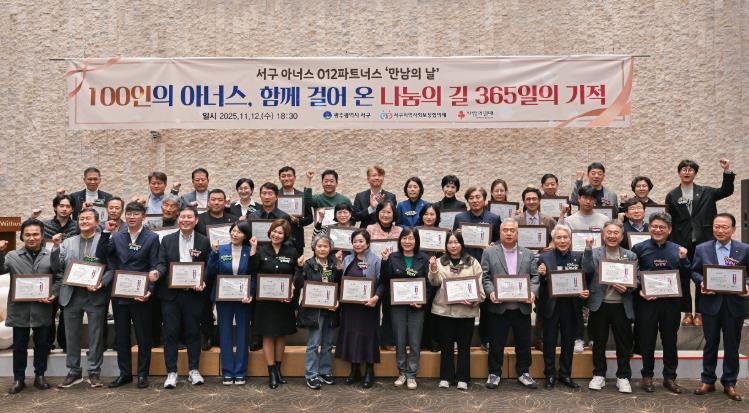 김이강 서구청장은 “1년 전의 첫걸음이 이제 100명의 큰 걸음이 되어 따뜻한 길, 모두가 행복한 길을 열고 있다”며 “나눔은 어느 한 사람의 선행이 아니라 서로의 마음이 이어주며 ‘나눔이 일상이 되는 착한도시 서구’를 온전히 실현할 수 있도록 행정도 적극 지원하고 함께 하겠다”고 말했다.
