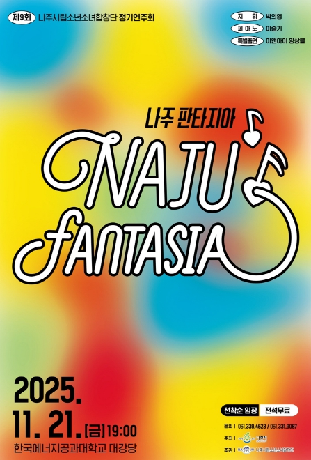 나주시는 오는 21일 오후 7시 한국에너지공과대학교 강당에서 나주시립소년소녀합창단 정기연주회 ‘나주 판타지아’를 개최한다고 14일 밝혔다.