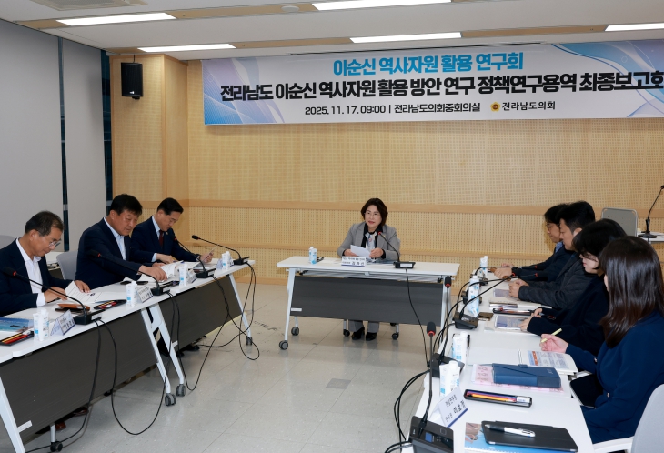 김화신 대표의원은 “이번 연구는 이순신 장군의 전투 현장이 집중된 전남의 특성을 근거로, 산재한 자원을 하나의 역사·문화 체계로 정리한 매우 중요한 작업”이라며 “전남 이순신 자원을 어떤 방향으로 묶고, 어떤 방식으로 활용해야 하는지 정책적 판단을 세울 수 있는 기초자료가 마련됐다”고 말했다.