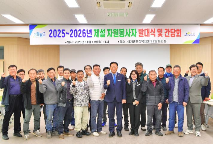 30여 명의 지역 주민으로 구성된 삼계면 제설자원봉사단은 제설차량 진입이 어려운 마을 안길이나 이면도로 등에 쌓인 눈을 치우고, 얼음을 제거하는 역할을 맡는다.