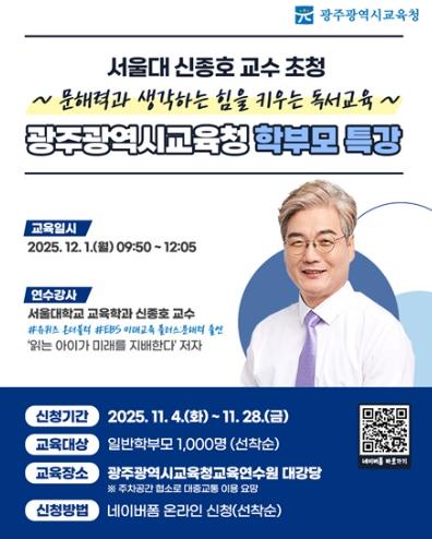이정선 교육감은 “문해력은 단순히 글을 읽는 능력이 아니라 학생이 스스로 생각하고 문제를 해결하는 기본 역량”이라며 “이번 특강이 학부모들에게 가정에서의 독서 습관 형성 방법을 이해하는데 도움이 되길 바란다”고 밝혔다.