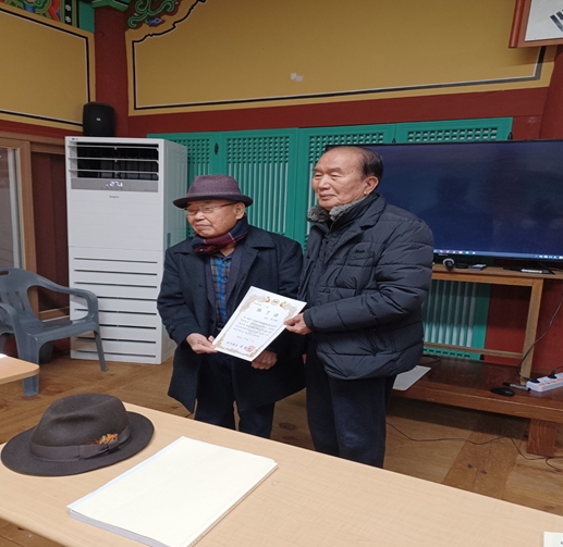 전교(김한섭)는 93세인 양문석 원임 전교에게 수료증을 전달하면서 마무리 인사에서 배움은 늙고 젊음이 없다고 하시면서 논어의 한구절인 시시때때로 배우고 읽히면 즐겁지 아니한가를 말씀하시며 즐거운 시간이 되도록 협조하여준 수강생에게 감사의 인사를 했다.