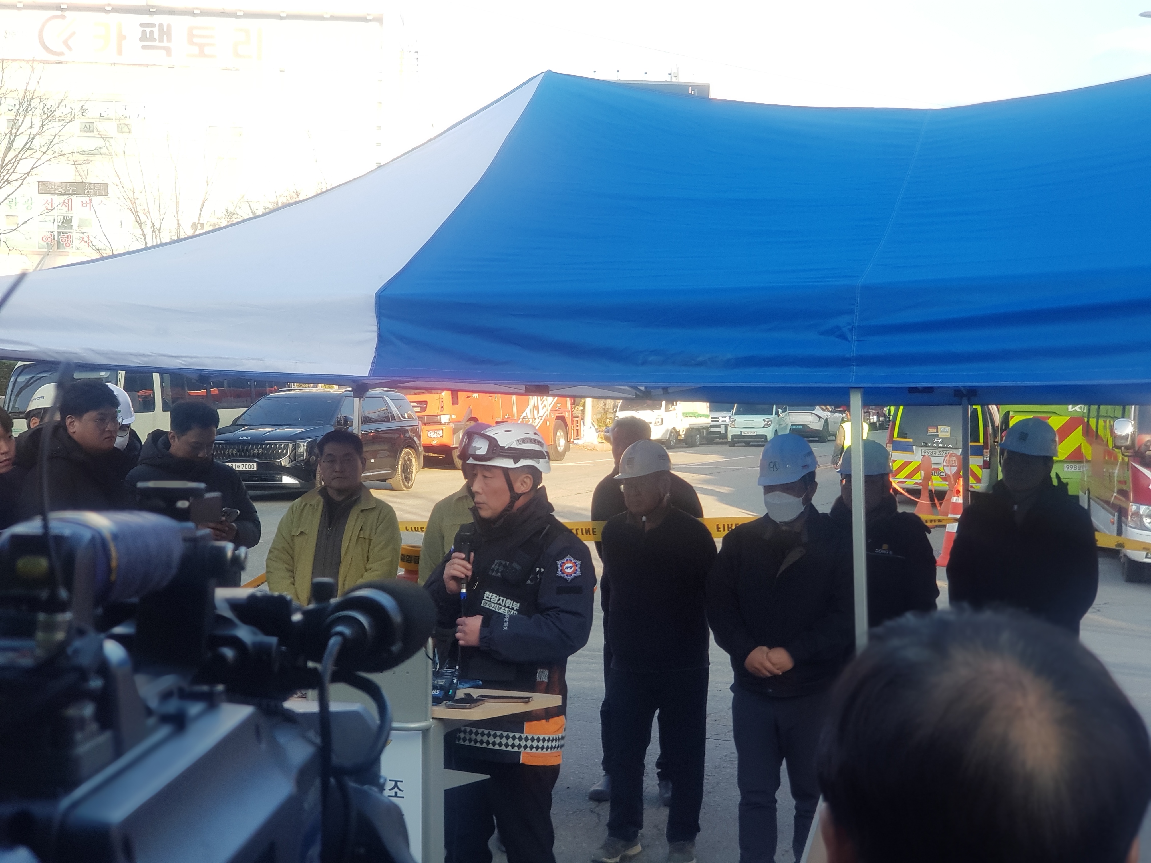 오후 4시 광주광역시 서부소방서 예방안전과장의 브리핑에서 아직까지 실종자를 찾지 못했다고 전했다. 브리핑 도중 한 시민이 공법에 대해서 질문을 하였지만, 감리 담당자는 새로운 건설공법에 대해서는 알지 못한다고 밝혔다. 질문을 한 시민은 데크플레이트 방식에서 중간 부분이 문제가 있다고 밝혔다.