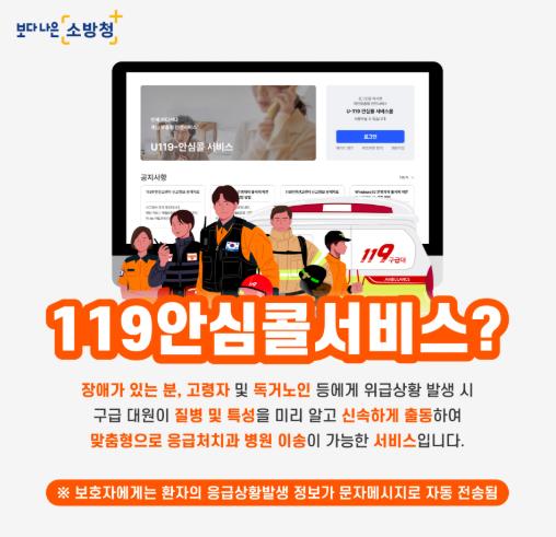 119안심콜 서비스는 국민이 사전에 자신의 전화번호와 질병 정보, 보호자 연락처, 주소 등을 등록해두면 119신고 시 해당 정보가 자동으로 전송되어 보다 빠르고 맞춤형 대응이 가능하도록 지원하는 제도이다.