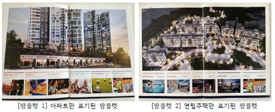 시행사 “갑”(신창동지역주택조합)은 각기 다른 날짜의 분양 설명회에서 [팜플렛 1], [팜플렛 2]를 이중제작, 배포하여 “구매자”를 현혹하고, 영산강 조망권과 일조권의 우수함에 대해 허위 광고하였고, 연립주택 분양 시 [팜플렛 2]를 배포, 계약자 “을”(일반분양자) 의사결정에 지대한 악영향(조망권 및 일조권 등)을 미치는 앞 측 아파트 3동에 대해서는 어떠한 설명도 없었다.