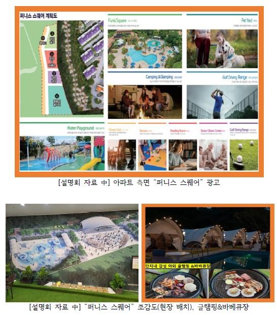 또한, 분양 설명회에서 약 3,000평 규모의 대지에 경관녹지 및 각종 편의시설(퍼니스 스퀘어, 물놀이 놀이터, 벚꽃길, 펫야드, 캠핑 & 글램핑, 야외 골프연습장)에 대한 광고했고, 25년 10월 2일 보증사고 발생 후 계약자 “을”(일반분양자)들의 "광산구청”의 인허가 방문 당시 해당 구역은 “경관녹지”로만 허가받았으며, 어떠한 여가시설도 건설 계획에 포함되어 있지 않음을 구청 담당자에게 확인했다.