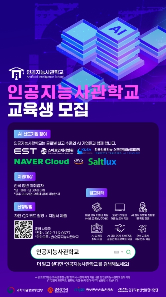 광주인공지능사관학교는 광주시와 과학기술정보통신부, 정보통신산업진흥원, 인공지능산업융합사업단이 지원하는 인공지능 전문인력 양성기관이다. 2020년 개교 이후 5년간 총 1528명의 전문 인력을 배출했으며, 최근 3~5기 수료생의 취·창업률은 76%를 기록하는 등 성과를 이어가고 있다.